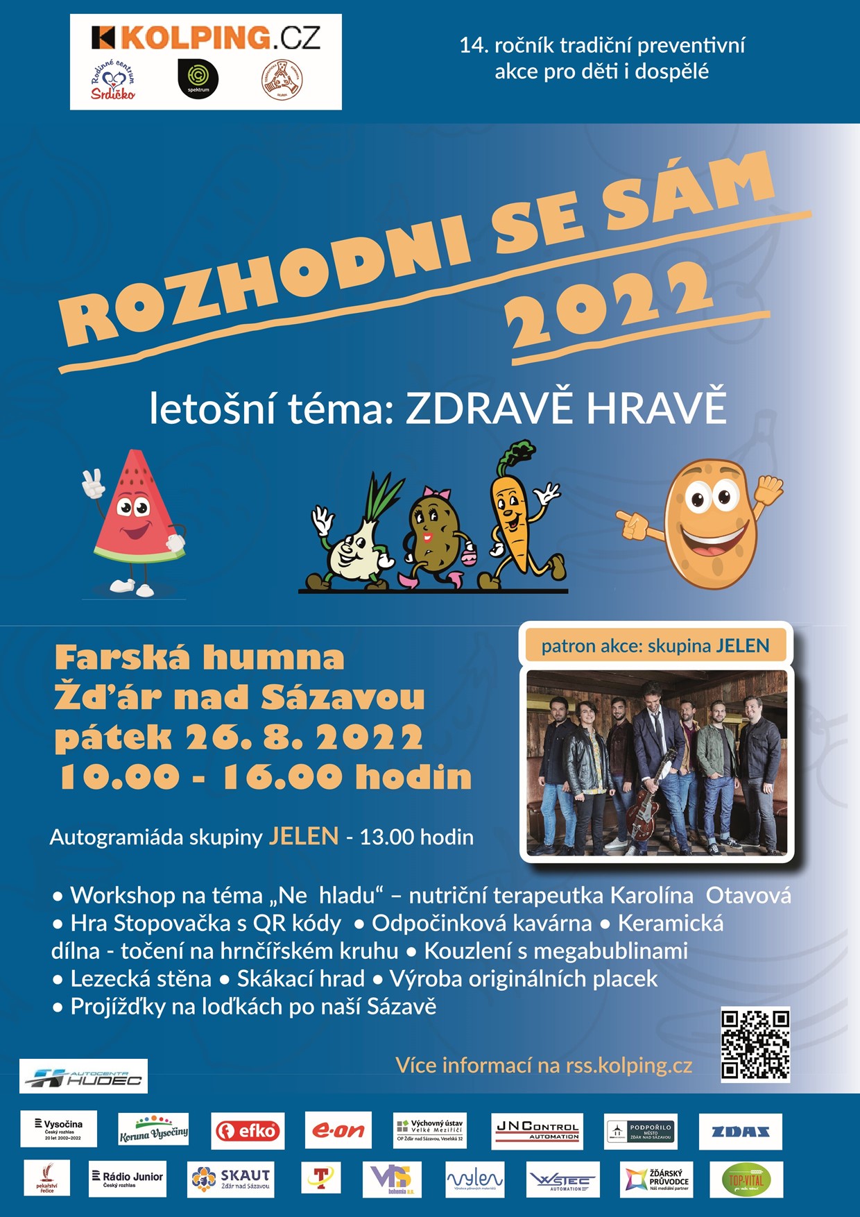 V pátek 26. srpna proběhne od 10 do 16 hodin na Farských humnech ve Žďáru nad Sázavou již čtrnáctý ročník preventivní akce pro děti, mládež i celé rodiny Rozhodni se sám. Téma letošního ročníku Zdravě hravě představí prostřednictvím různých aktivit a workshopů problematiku stravování a zdravého životního stylu.