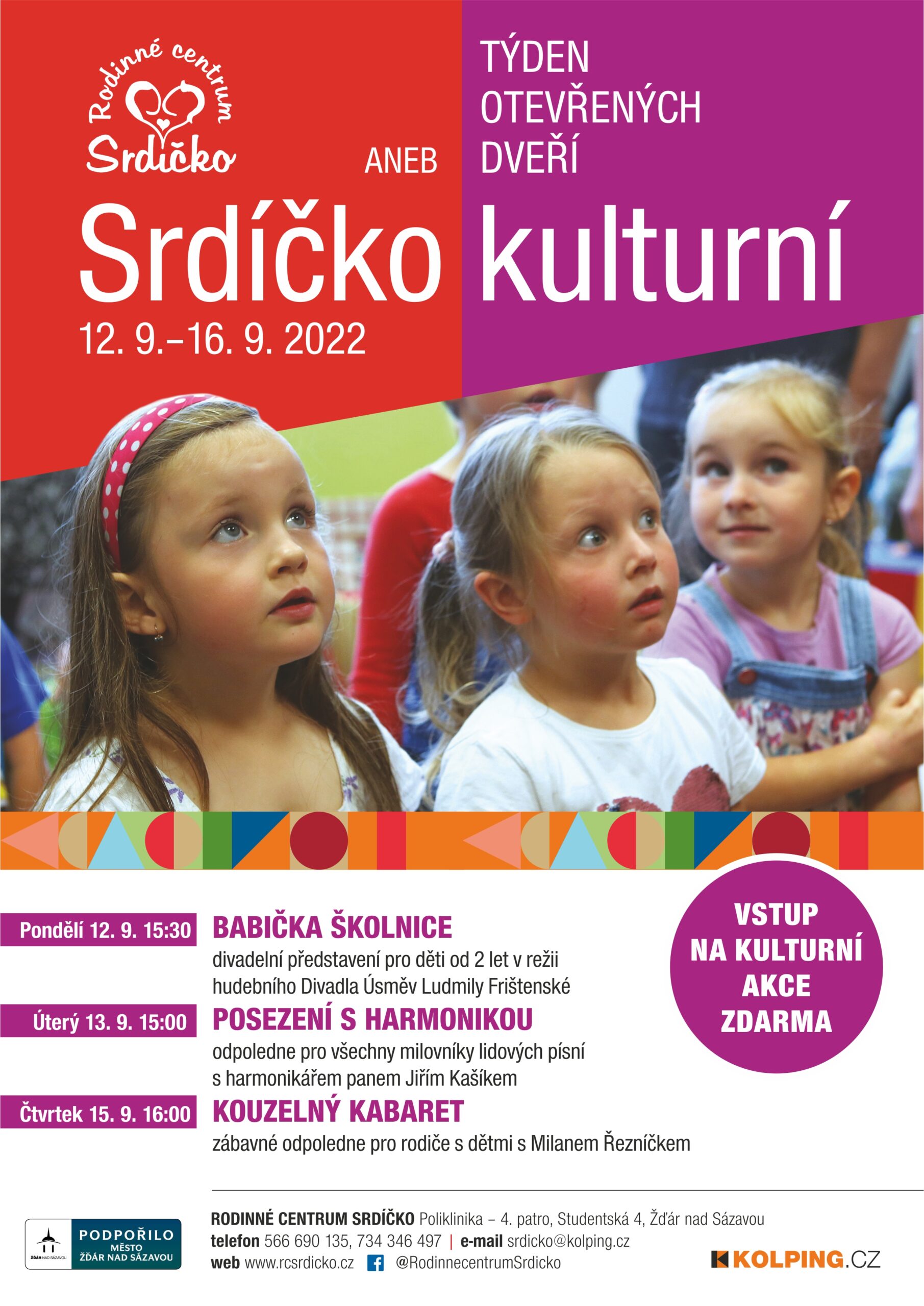 Zveme Vás v týdnu od 12. do 16. září na Týden otevřených dveří, který bude také letos doprovázet blok kulturních akcí s názvem Srdíčko kulturní.