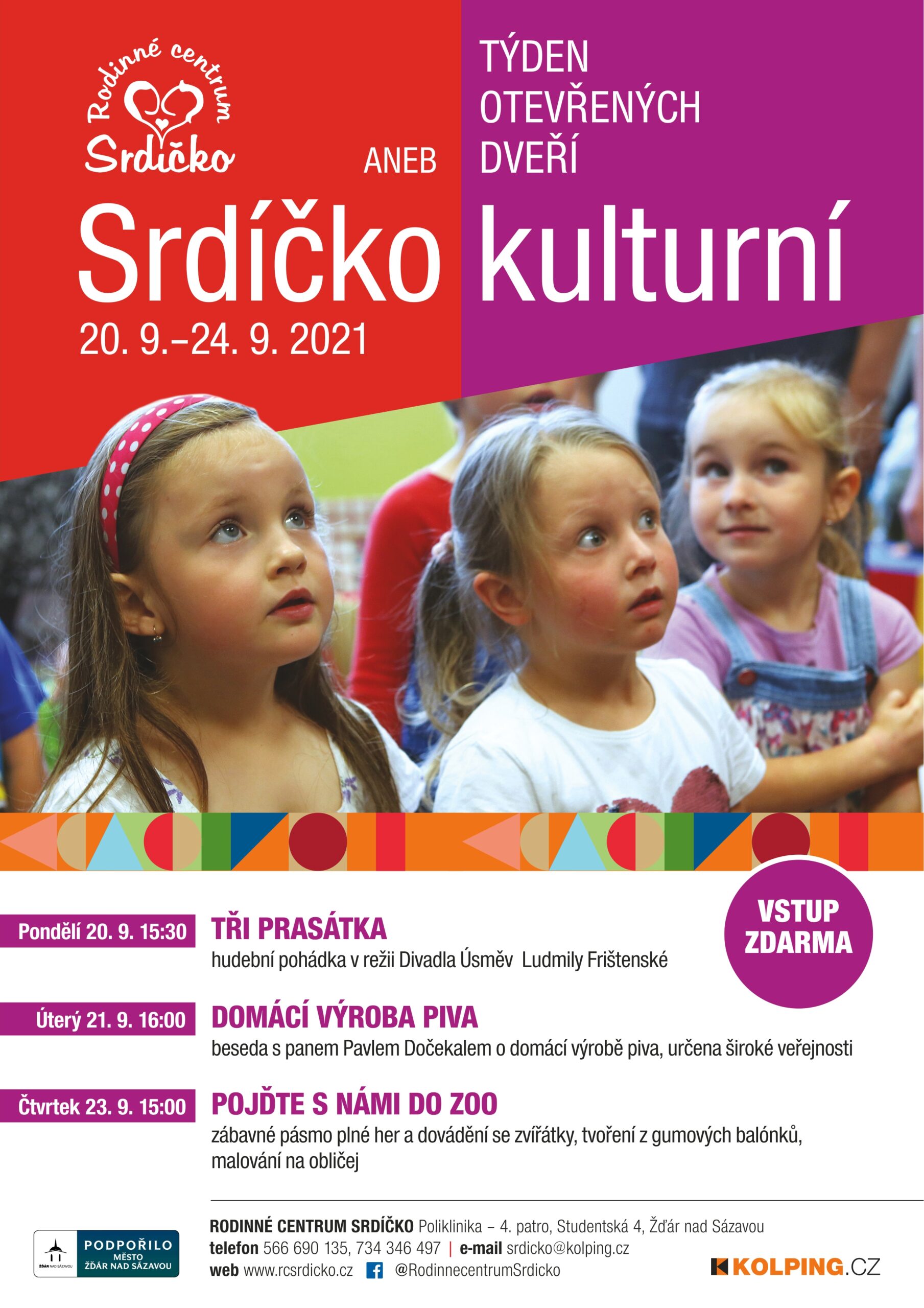 V týdnu od 20. do 24. září proběhne v Srdíčku Týden otevřených dveří, který doprovodí projekt Srdíčko kulturní 2021. V tomto týdnu si můžete přijít prohlédnout naše prostory, navštívit zdarma některou z aktivit a seznámit se s naším provozem.