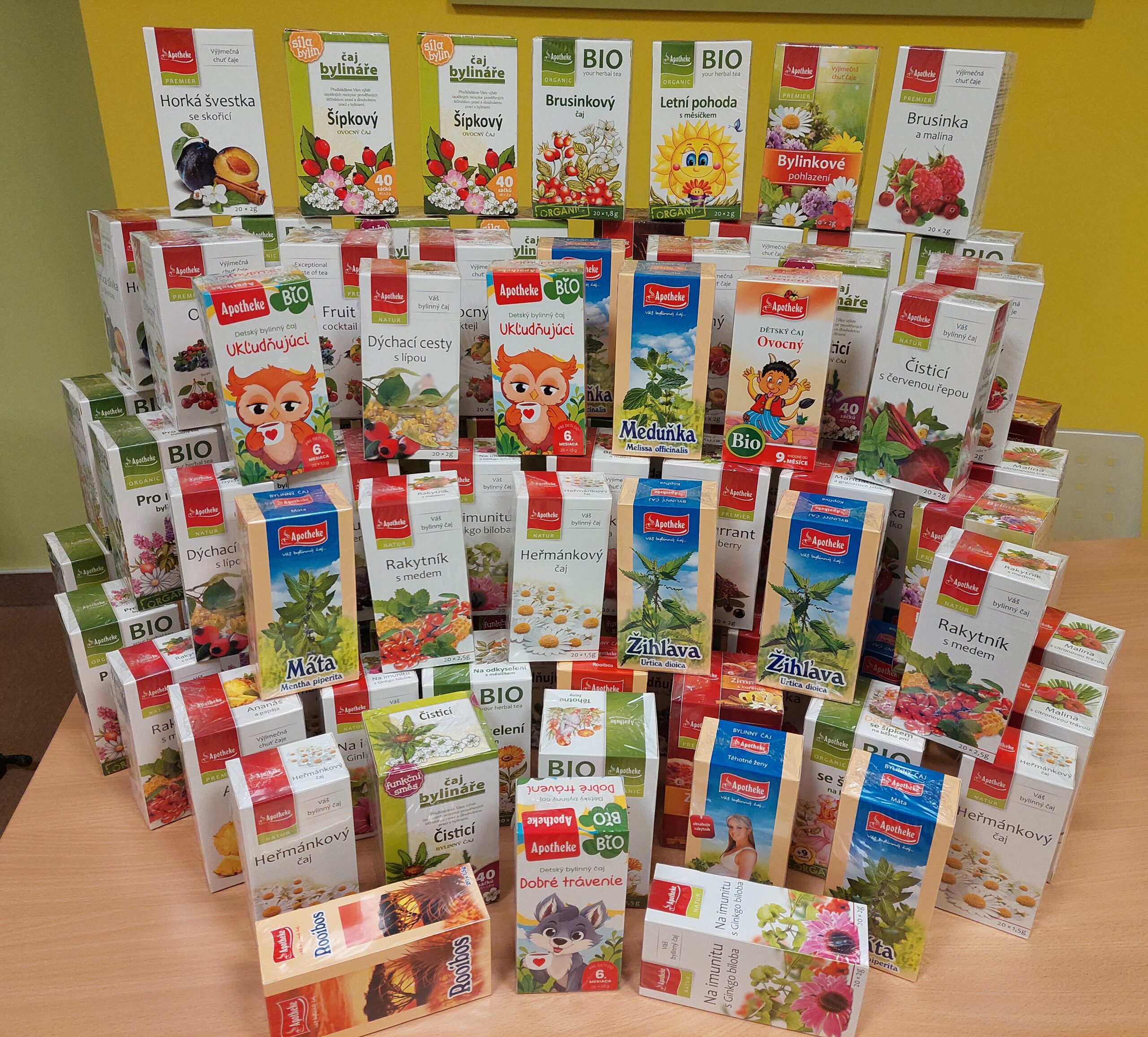 Děkujeme společnosti MEDIATE s.r.o. za opětovné poskytnutí zásoby bylinných, ovocných a speciálních čajů značky Apotheke pro naše návštěvníky na celý rok. Tyto výborné čaje jsou chutným, hřejivým, milým a léčivým zpestřením našich programů pro nastávající rodiče, rodiče s dětmi, děti i prarodiče už pátým rokem. A to je dobrý důvod k radosti!
