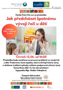 12čer16:0017:30Jak předcházet špatnému vývoji řečí u dětíOdborná přednáška