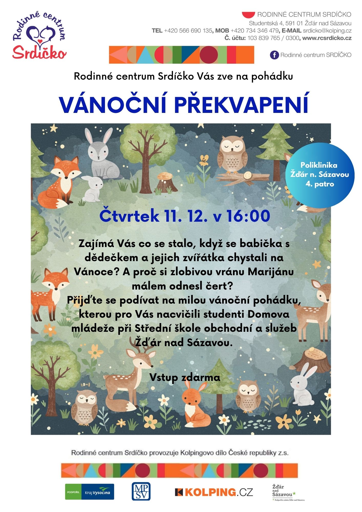11pro16:0017:00Vánoční překvapení - pohádkaVánoční odpolední pohádka